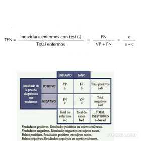 | Tasa de falsos negativos (TFN) | Probabilidad de que un individuo enfermo, sea clasificado como sano. |