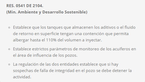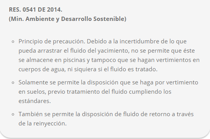 | A donde va el agua y el fluido de fracturamiento usados en el proceso de Fracking según la legislación Colombiana? | |