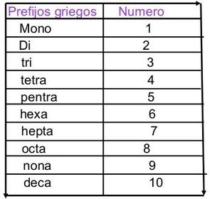 | NOMENCLATURA SISTEMÁTICA | Se inicia el nombre del prefijo que indique el numero de átomos de anión unido al nombre de la función, preposición "de" enseguida del prefijo que indique el número de átomos del metal que tenga la fórmula. |