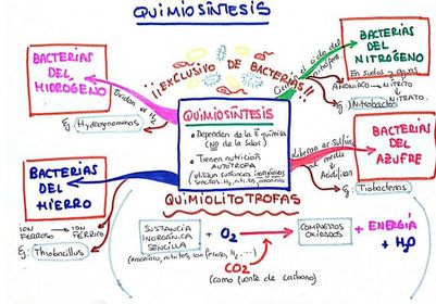 | Hay bacterias con quimiosíntesis: del hidrógeno, nitrógeno, azufre hierro. | *síntesis: formación de... |