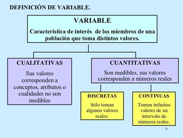 | VARIABLE CUANTITATIVA | Es la que se expresa mediante un número. Podemos distinguir dos tipos: .- Variable discreta: es aquella que solo puede tomar un número entero: nº de hermanos, edad.. .- Variable continua: es aquella que puede tomar todos los valores de un intervalo (nº decimales): altura, peso.. |