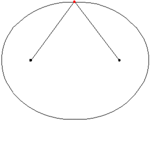 | La elipse es el lugar geométrico de todos los puntos de un plano, tales que la suma de las distancias a otros dos puntos fijos llamados focos es constante. | |