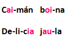 | 2- También puede estar formado por dos vocales cerradas. | 3- La "h" intercalada entre dos vocales,ya que no produce sonido, no significa que no pueda haber diptongo. Ejemplo: |