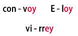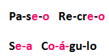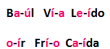 | Triptongo: Es la combinación, en una sola sílaba, de tres vocales, están formados por una vocal abierta (a, e, o) que ocupa la posición intermedia entre dos vocales cerradas (i, u), de las cuales ninguna puede ser tónica | Ejemplos: |