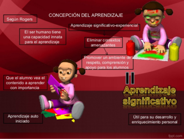 | Principales conceptos | De esta teoría surge el aprendizaje significativo el cual implica experiencia directa, pensamientos y sentimientos es auto iniciado e involucra a toda persona, así mismo tiene impacto en la conducta y en las actitudes e incluso puede llegar a cambiar la personalidad de la persona. |