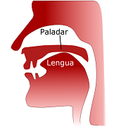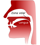 | -Palatal: lengua y paladar - /ch/, /ll/, /ñ/, /y/ (chollo, eñe, yoga). -Velar: lengua y velo del paladar - /k/, /g/, /j/ (kilo, eco, equis, guía, gata, eje, giro). | |