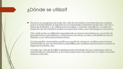 | En esta ficha puede apreciarse el uso que se le da a excel. | |