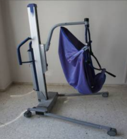 | Grúa Se emplea en las unidades de hospitalización para la movilización de pacientes impedidos o demasiado pesados, garantizando así mayor seguridad y menor riesgo de lesiones para el paciente y para el personal de enfermería y celador. | |