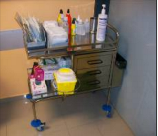 | Carro de curas Sirve para el depósito y posterior traslado del material sanitario necesario para realizar las curas a los pacientes que lo precisen. | |