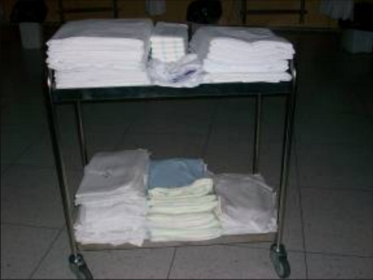 | Carro de lencería Utilizado para la recogida y transporte de la lencería utilizada para el aseo del paciente y de la cama. | |