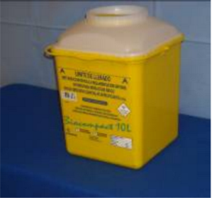 | Contenedores desechos clínicos Contenedores expresamente diseñados para el desecho de residuos clínicos punzantes o cortantes: jeringuillas, agujas, etc. | |
