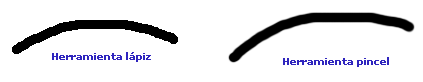 Lápiz: El lápiz es similar al pincel, con la diferencia que éste realiza un trazo sin suavizado en los bordes y totalmente opaco. |