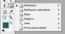 Rectángulo: Sirve para hacer rectángulos, que pueden estar o no rellenos de color. En el lugar donde está el rectángulo hay otra serie de herramientas para hacer otros tipos de formas, como elipses, líneas o incluso formas personalizadas. |