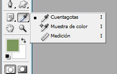 | Herramienta cuentagotas: Con el cuentagotas podemos seleccionar colores, de cualquier parte de la imagen, para colocarlos como color frontal. | |