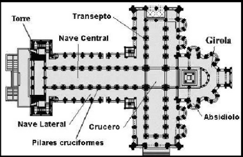 | Características: arquitectura | -Arcos de medio punto -Vanos pequeños -Planta de cruz Latina -Austeridad -cripta, alguna iglesias guardabas reliquias de los santos. Campanario |