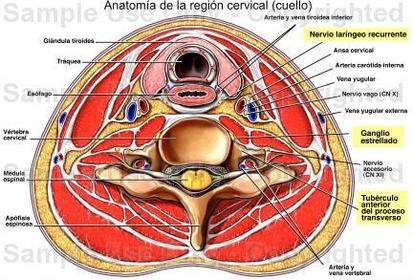 | La porción cervical se extiende desde ... hasta ... | Desde C6 hasta el plano horizontal que pasa por el manubrio esternal, a nivel de T3 |