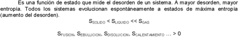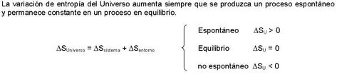 | TERCER PRINCIPIO DE LA TERMODINAMICA | Cuanto mayor sea el desorden molecular (libertad de movimientos) mayor entropía. Por el contrario, el mínimo valor de la entropía lo presentará el mayor orden molecular, con la mínima libertad de movimientos. Se consigue con un cristal perfecto en el cero absoluto (0 K), en ese caso, S es igual a cero cal/K·mol o J/K·mol. |