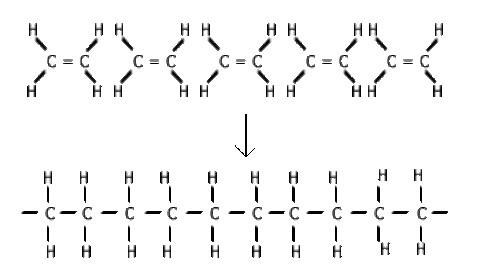 | an example of polymerisation. | the polymer poly(ethene) is made from ethene monomers |