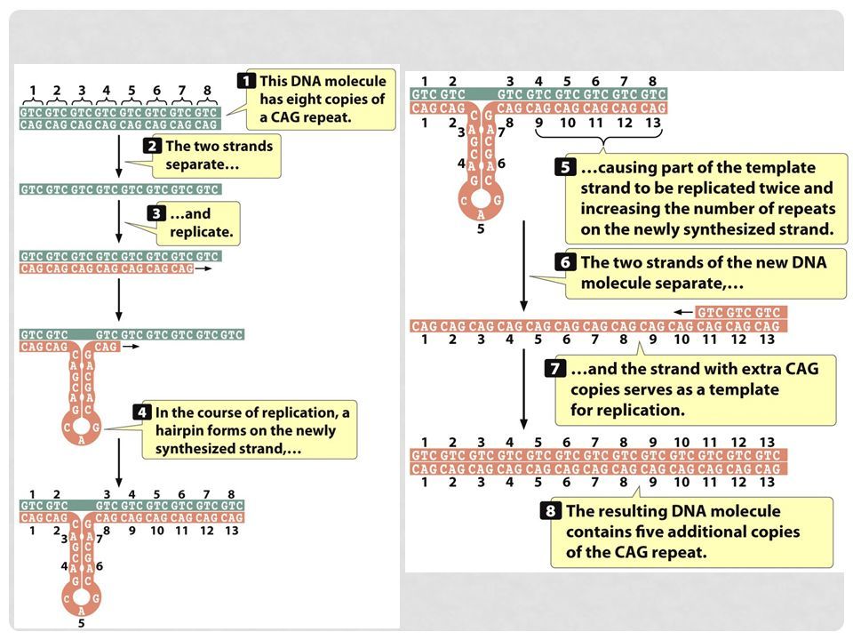 Expanding Nucleotide Repeat Mutations (Diagram shows increased severity as more replications occur)