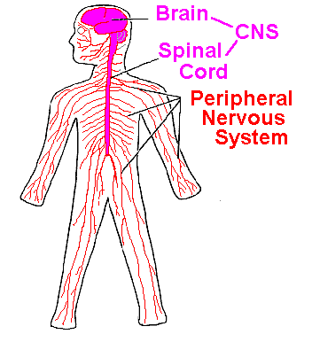 The central nervous system (CNS) and the peripheral nervous system (PNS).