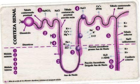 1 - Inibidores de Anidrase Carbônica (Acetalozamida) 2 - Diuréticos Osmóticos (Manitol) 3 - Inibidores de Alça (Furosemida) 4 - Tiazídicos (Clorotiazida) 5 - Poupadores de K+ (ENaC = Amilorida, Inib. de Aldo = Espironolactona) 6 - Antagonista do ADH |
