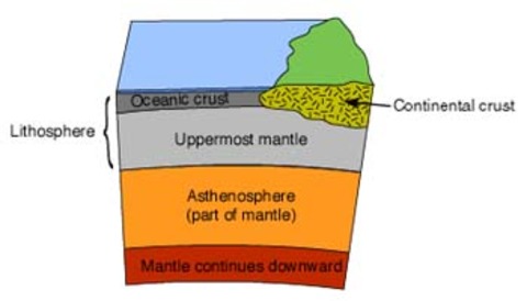 | Solid upper mantle + crust | Lithosphere |