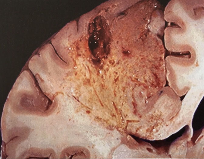 | Descreva | Necrose liquefativa. Infarto no cérebro. |