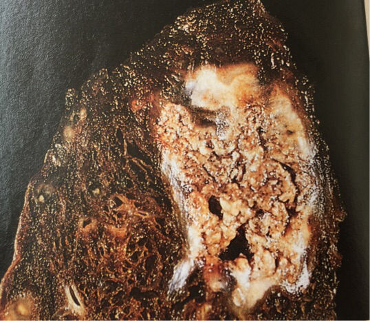| Descreva | Necrose caseosa em pulmão tuberculoso. |