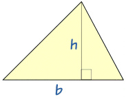 | Area of a Triangle | Area of a Triangle = 1/2 x bh b = base h = perpendicular height |