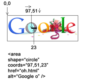 | image maps | image map area element is used to make only a certain area of the image into a hyperlink |