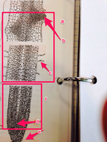 a- region of maturation b- secondary root branches c- root hairs (absobtion of water) d- apical meristem e- root cap f- region of elongation |