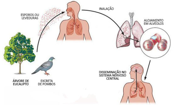 | Forma inalada dos Cryotococcus | Leveduras/basidiósporos |