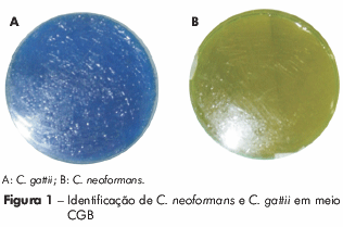 | Meio diferencial de C. gatii e C. neoformans | Meio cavanina; Glicina azul de bromotimol (CGB) |