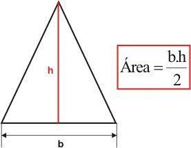 | A área do triângulo pode ser calculada através das medidas da base e da altura da figura. Área: área do triângulo b: base h: altura |