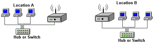 | -- are pretty much just wireless hubs or switches that behave like their wired counterparts. Basically, they create a point-by-point connection to endpoints and other wireless access points. | access points |