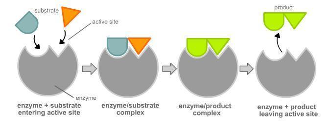 | Describe the lock and key theory | The substrate (key) fits into the active site (lock) and once in place, they bind together and a reaction takes place rapidly and the products are released from the enzyme |