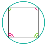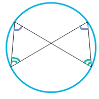 | Opposite angles of a cyclic quadrilateral add up to 180*. (A cyclic quadrilateral is a four-sided shape with each corner touching the circumference of the circle). | |