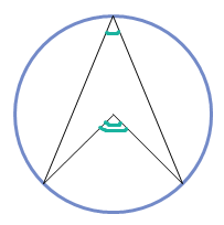 | The angle at the centre is twice the angle at the circumference. | |