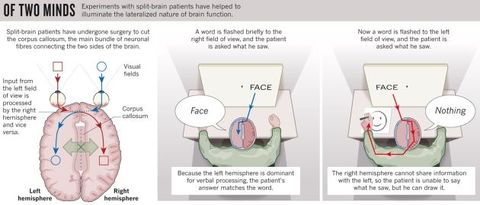 | 2) There is some laterality in the brain. | Some things are on one side and not the other. Right handed people: - language, details on left side - facial recognition, patterns on right side |