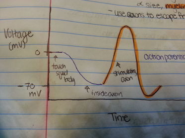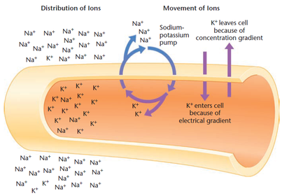 | Resting Potential | -70 mV; due to chemical (concentration) and electrical gradient involving the cell; interior of cell is slightly negative relative to exterior |