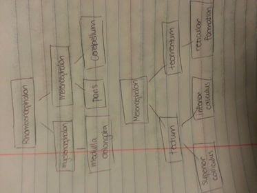 | Three different pouches of the brain | Top --> bottom prosencephalon (forebrain) - telencephalon (front) - diencephalon (back) mesencephalon (midbrain) rhombencephalon (hindbrain) - metencephalon - myelincephalon |