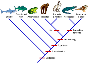 | On an evolutionary tree....... | homologous characteristics form a nested pattern |