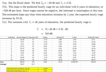 | 5. The distinction between the stochastic error term and the residual is one of the most difficult concepts to master. In your own words, define the error term and define the residual. In what ways (state at least 2) do the residual and error term differ? | 5. The error term "i is the difference between the dependent variable Yi and the population regression function. The residual is the difference between the dependent variable Yi and the estimated regression function. The differences between the two are: (1) "i is not observed, whereas ei is estimated; (2) "i is a quantity in the population, whereas ei is calculated in the sample; (3) "i is the difference between Yi and the unobserved population regression function, whereas ei is the difference between Yi and the estimated regression function. |