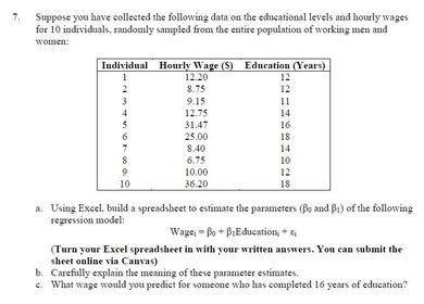 | 2. (Studenmund, exercise 1.5) Suppose you collect data on the heights and weights of 30 randomly selected men and estimate the following regression equation: | 2(a). The coefficients in the new equation are not the same as those estimated in the previous equation because the sample is different. When the sample changes, so too can the estimated coeffcients. 2(b). Equation 1.21 has the steeper slope (6.38 > 4.30) while Equation 1.24 has the greater intercept (125.1 > 103.4). 2(c). We use the equation ^ Yi = 125:1 + 4:03Xi to generate predictions and calculate the residuals as ei = Yi |