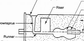 | A riser acts as a: | Pool or reservoir of molten metal to compensate for shrinkage during solidification and supply liquid metal. |