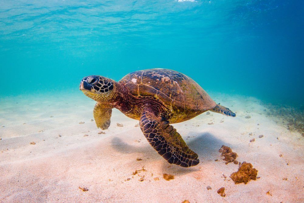 Sea turtles have a shell that attaches laterally, protecting them from predators and variations in temperature. |