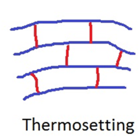 | What do thermo-setting polymers consist of? Do they melt when heated? | Polymer chains that are joined together by cross-links between them. They don't melt when they're heated. |