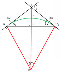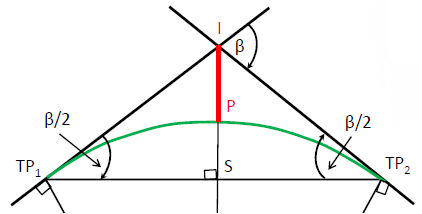 | Circular curve (arc) | TP1–P-TP2 is the circular curve (Arc) between the two tangent points |