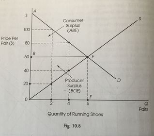 | Producer surplus | the producer was willing to produce a certain output at a lower price than the equilibrium. This can be determined by calculating BOE. |
