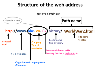 | Below is the URL of a web page. http://www.aqa.org.uk Explain what each of these parts of the URL mean. | http:// - (Hypertext transfer protocol) this is the protocol that will be used. www - web page uk - country the site is registered in |
